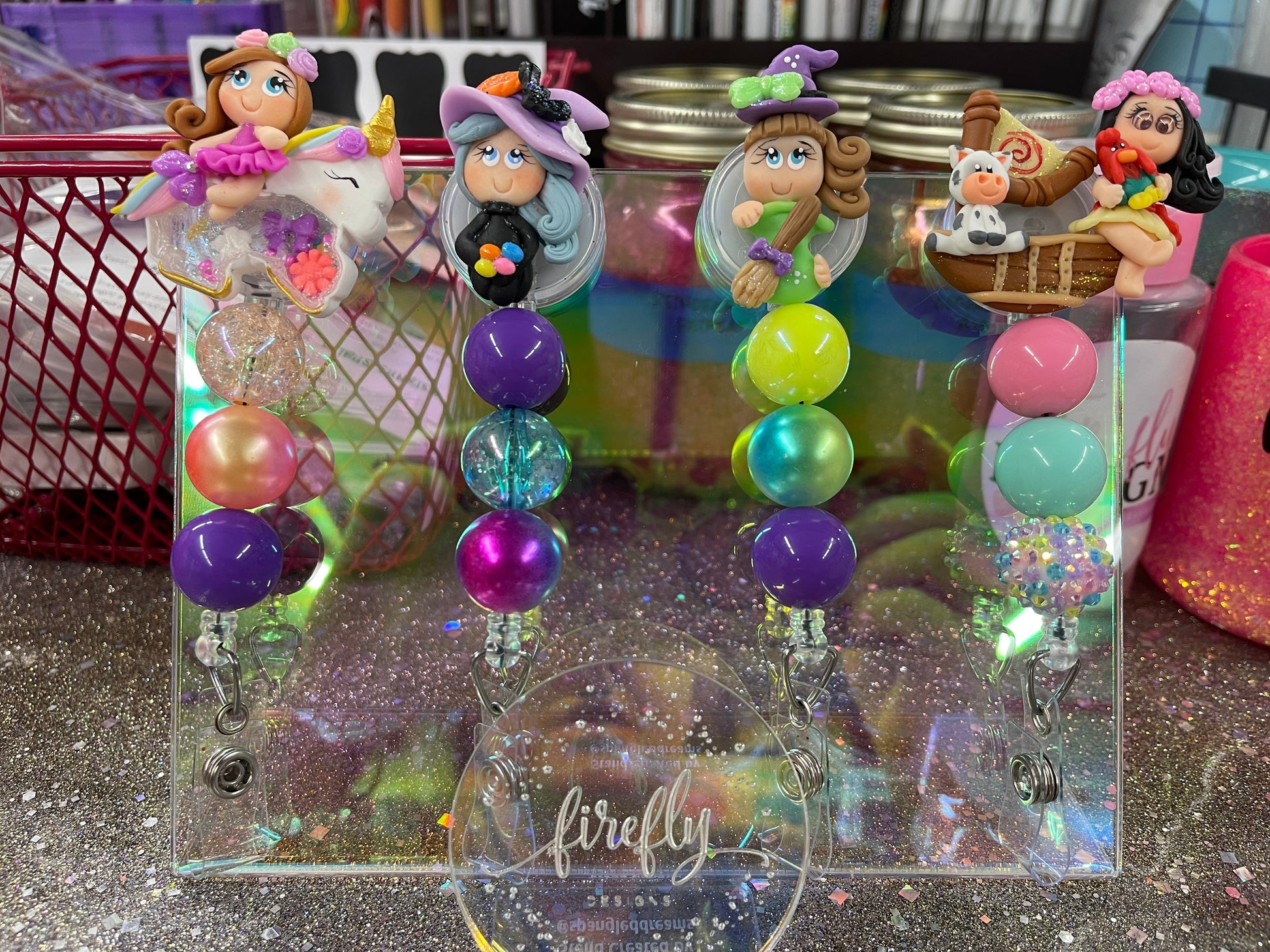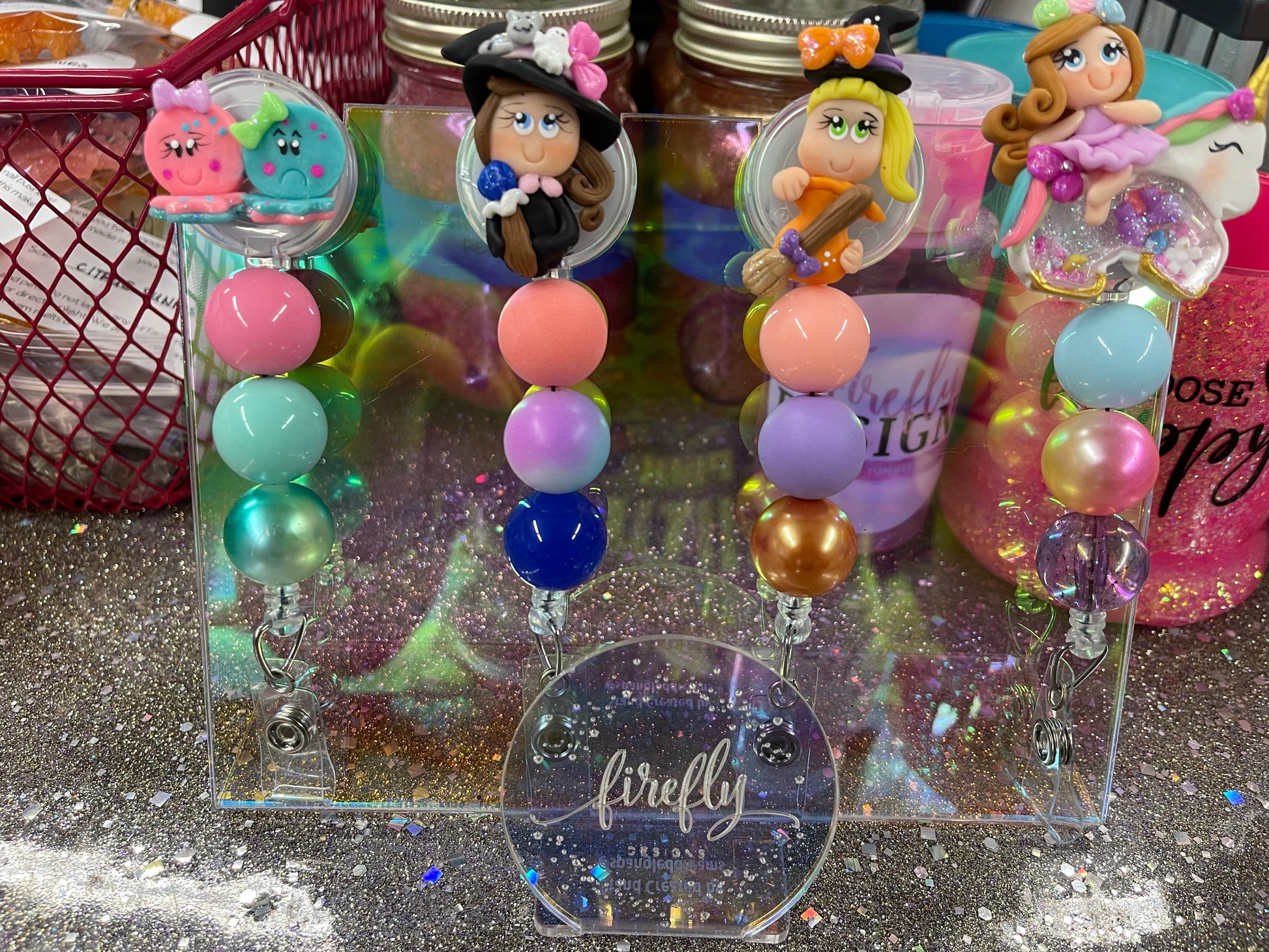 These badge reels are the cutest addition to any uniform! They are handmade from clay or druzy bezels and the beads added for more decoration. These one of a kinds also make excellent gifts for coworkers!